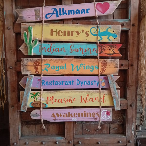 Leuke Boho bordjes voor binnen en buiten, aan stok met kralen. Gemaakt van resthout. Hangemaakt en geschilderd. Geef bij de bestelnotities aan welke van de twee borden u wenst. Afmetingen: 40 x 17 cm. Levertijd: 3-5 dagen €22,50 (excl. verzendkosten) let op dit is de prijs per stuk! Verzendkosten NL €7,50 Of gratis afhalen in Nootdorp Voor meer informatie of vragen mail naar ibiza-meubels.nl