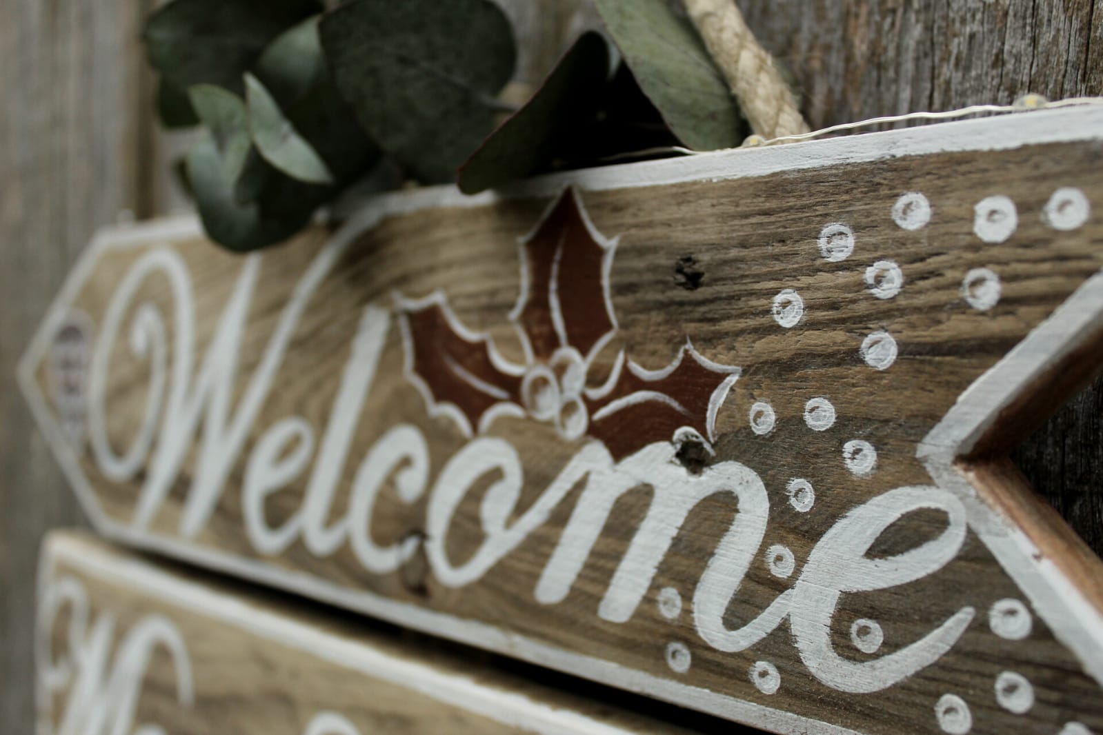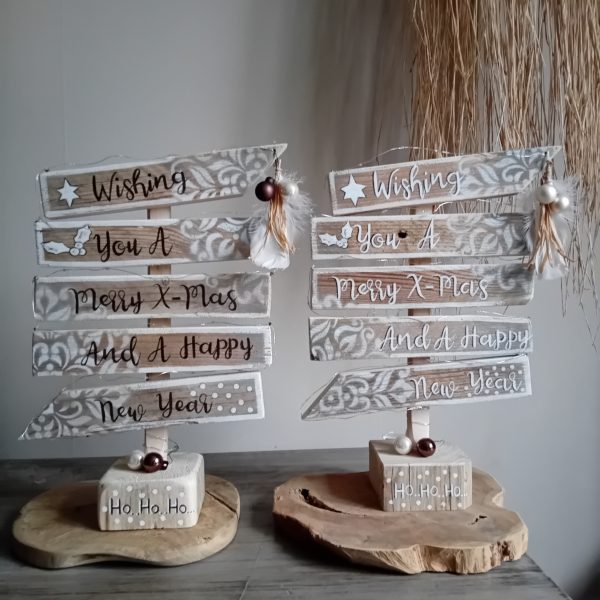 Chique handgemaakt ‘kerstbord naturel’, met handgeschilderde letters en afbeeldingen.