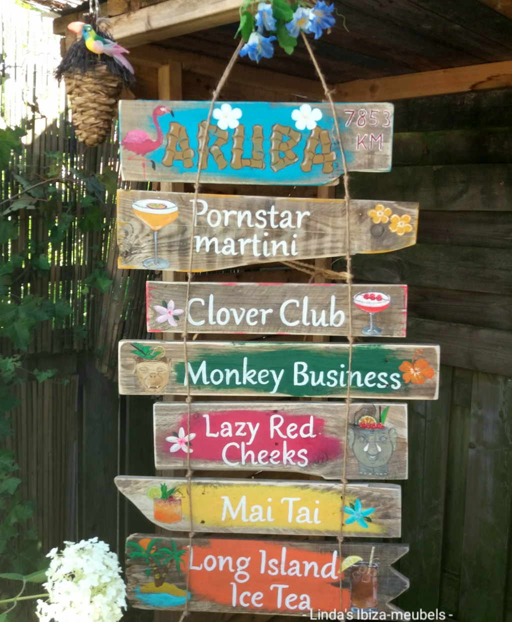 Leuke handgeschilderde 'drank bordjes' met uw favoriete (non-)alcoholische drankje! Malibu, Desperados, Aperol Spritz of Coca Cola! De bordjes zijn gemaakt van oud hout en worden geleverd met een touwtje waaraan deze kunnen worden opgehangen. Afmeting: 32 x 8 x 2 cm (ongeveer) Levertijd: ca. 5 werkdagen (afhankelijk van de drukte) €59 (exclusief verzendkosten) Verzendkosten: NL €6,95 Of gratis af te halen in Nootdorp. Voor meer informatie of vragen, mail dan naar info@ibiza-meubels.nl