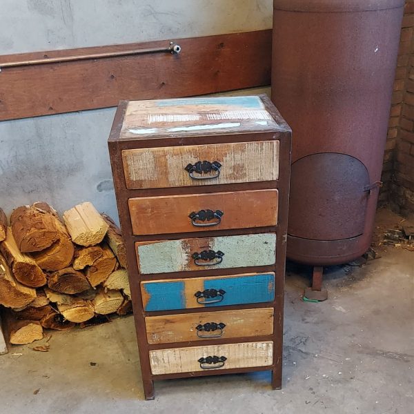 Stoer en leuk vintage Ibiza ladenkastje. Het frame is van verweerd staal en de lades zijn van hout. Afmetingen: 95 x 50 x 45 cm. Levertijd: op voorraad (3-5 werkdagen) € 125 (excl. eventuele verzondkosten) Gratis af te halen in Barneveld, bezorging is eventueel mogelijk in overleg (info@ibiza-meubels.nl) Betalen bij afhalen/bezorging mogelijk Voor meer informatie en of vragen mail naar info@ibiza-meubels.nl