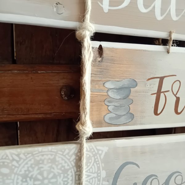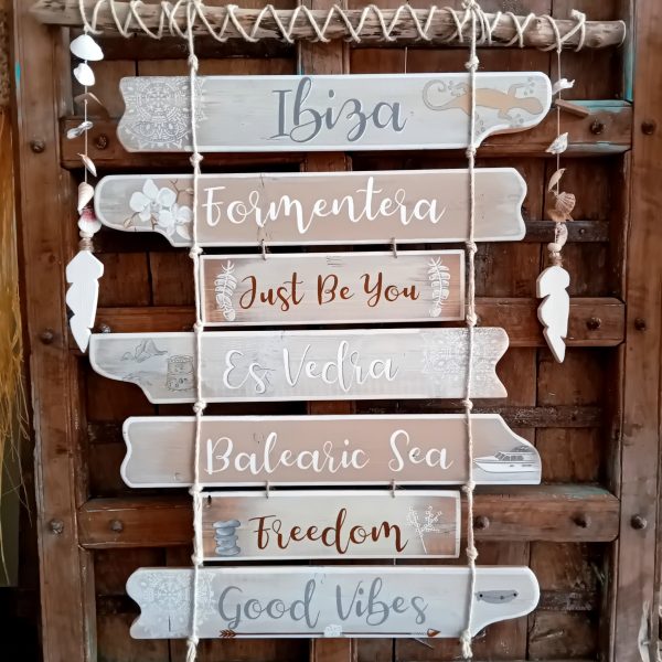 Leuke Boho bordjes voor binnen en buiten, aan stok met kralen. Gemaakt van resthout. Hangemaakt en geschilderd. Geef bij de bestelnotities aan welke van de twee borden u wenst. Afmetingen: 40 x 17 cm. Levertijd: 3-5 dagen €22,50 (excl. verzendkosten) let op dit is de prijs per stuk! Verzendkosten NL €7,50 Of gratis afhalen in Nootdorp Voor meer informatie of vragen mail naar ibiza-meubels.nl